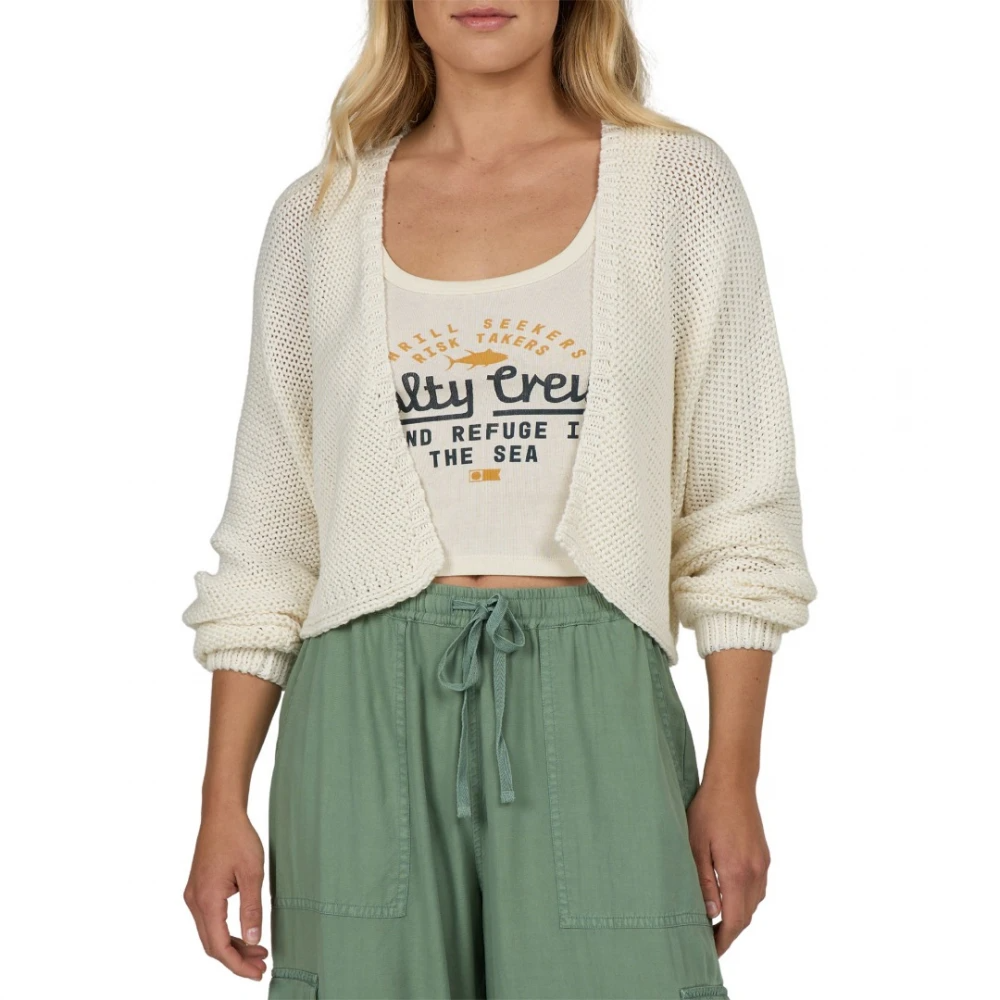 - Women's SALTY CREW cardigan in off white with a modern streetwear aesthetic.